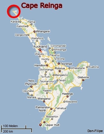 Das Kap befindet sich über 100 Kilometer nördlich von Kaitaia, der nächsten Siedlung. Von dort führt der Highway Nr. 1, vorbei an der wunderschönen Landschaft mit Felsen und Buchten, Büschen und Bäumen hin zum Kap. Wohl angemerkt ist der Highwy Nr. 1 auf den letzten 20 Kilometern nicht mehr geteert ist (soll heißen Schotterpiste). Die Neuseeländer nennen es aber trotzdem immer noch einen Highway.