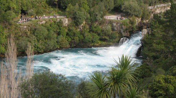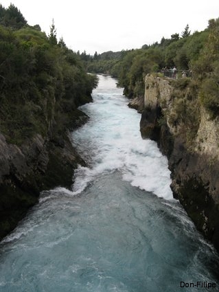 Freitag der 25th of April, north of lake Taupo an einem ganz besonderem Ort, genannt die Huka-Fälle. Die Huka-Fälle sind eine Kaskade von Wasserfällen des Flusses Waikato kurz nach seinem Ursprung aus dem Taupo-See. Der Waikato river stellt den einzigen Auslass aus dem Taupo-See dar.
